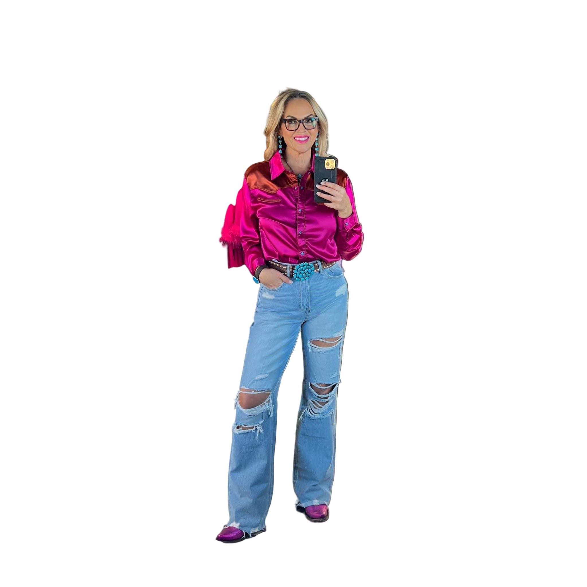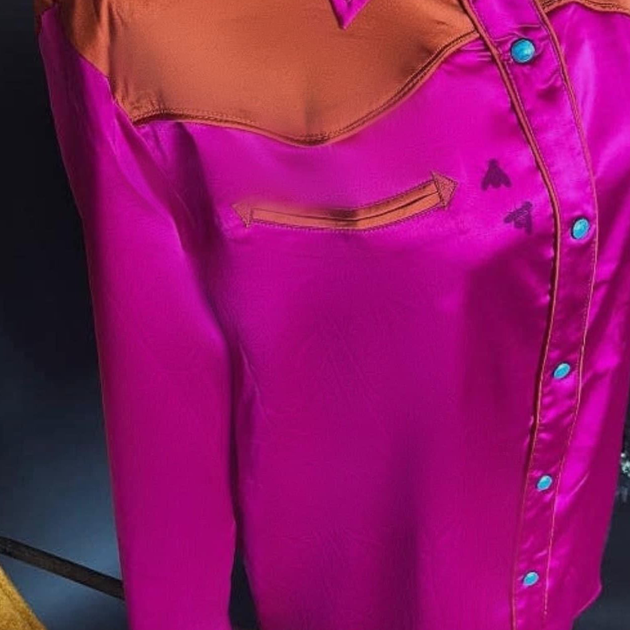 TWO-TONED & TOTALLY TWANGY Show up strong in this sheep suede statement jacket boasting cool contrast details, custom concho buttons,...