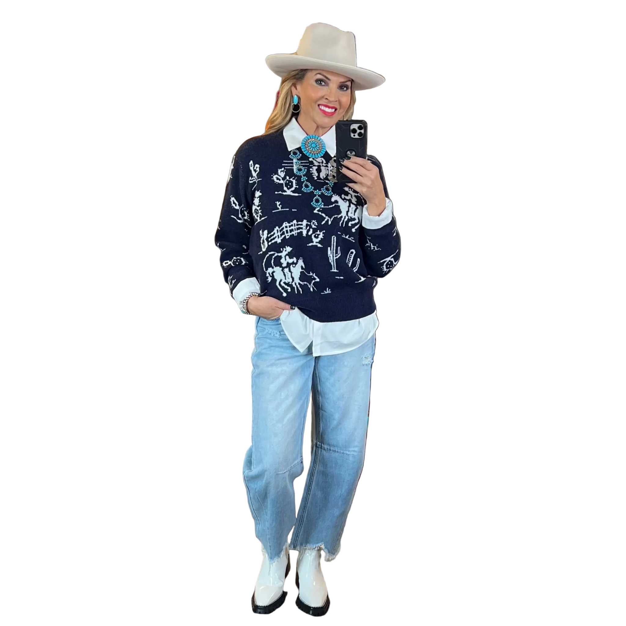 Introducing the Rancho Freeman Sweater, inspired by the father of Quincy, Billie Freeman. Crafted from soft knitted fabric, this stylish...