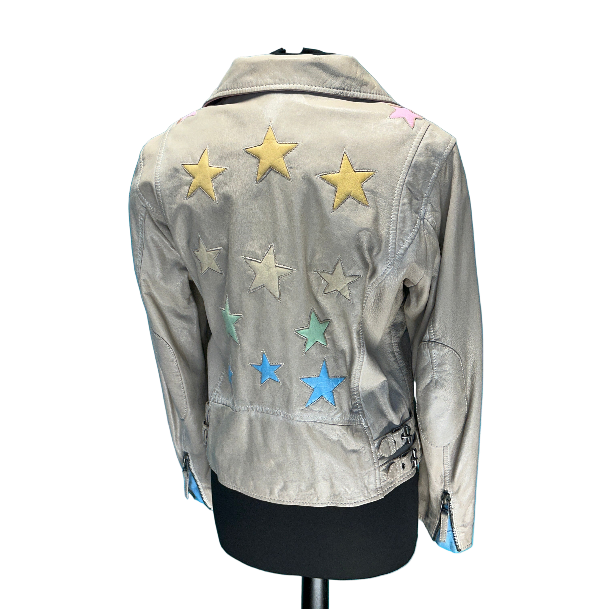 Add effortless edge to your look with this forever essentialleather jacket featured in a classic moto silhouette withcontrast star detailing...
