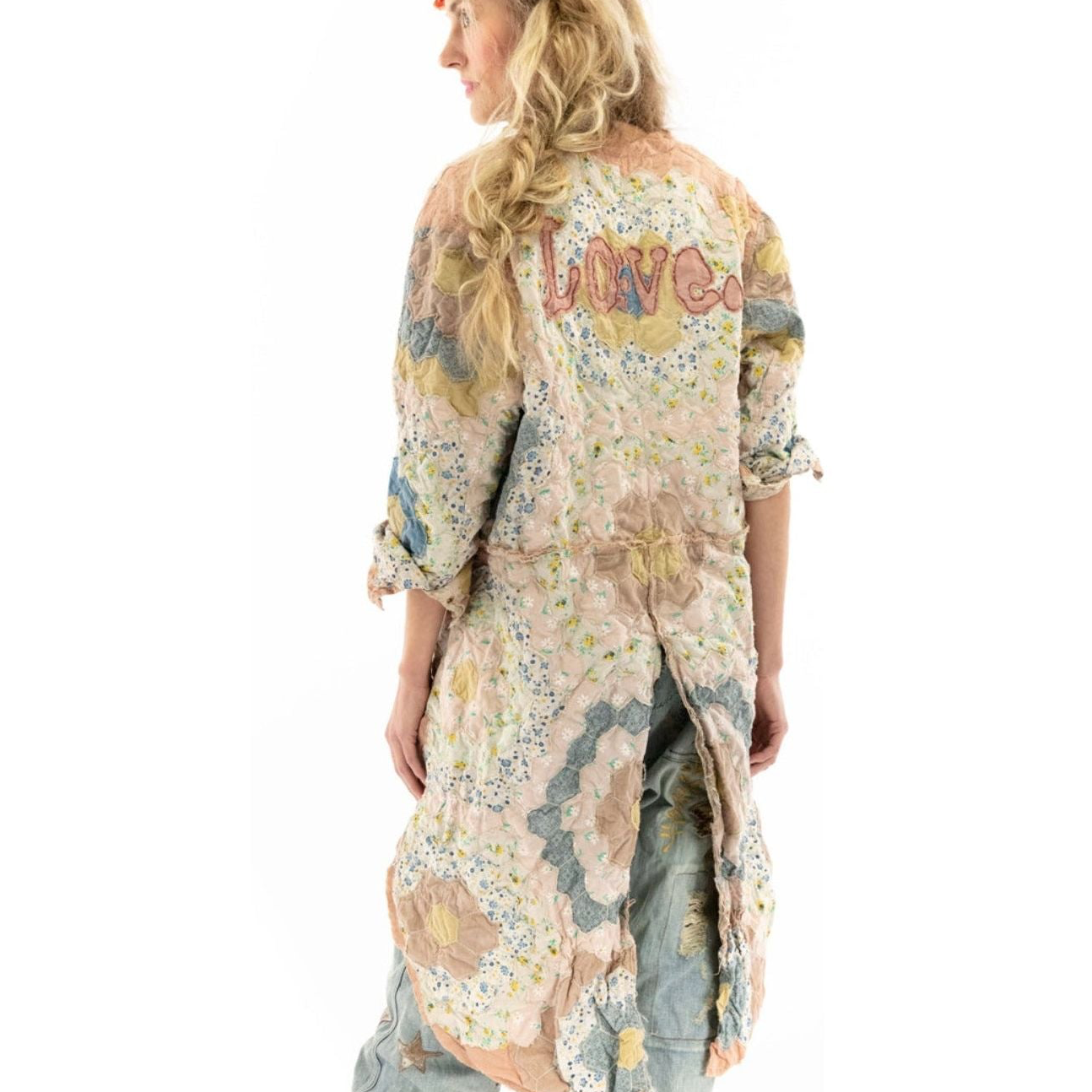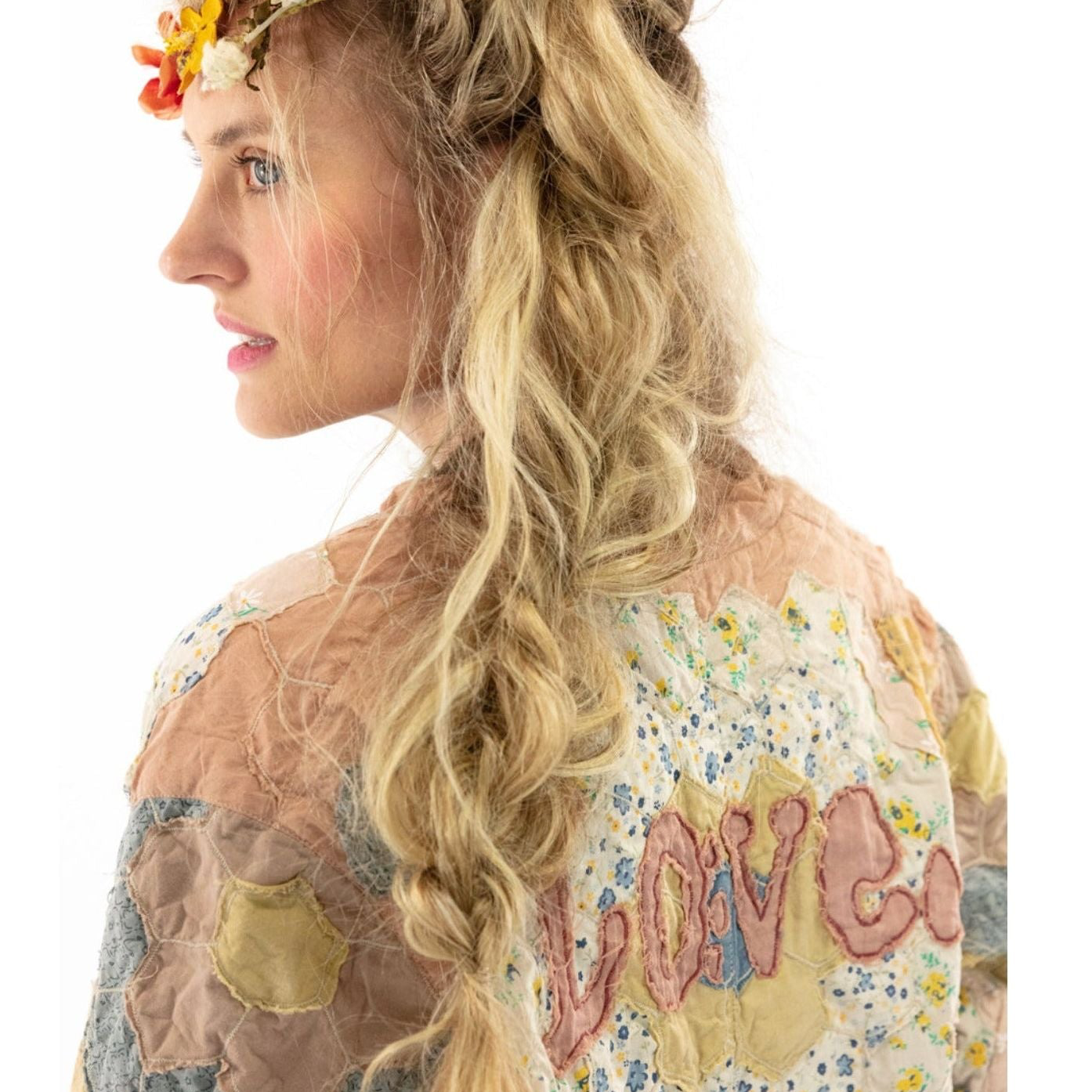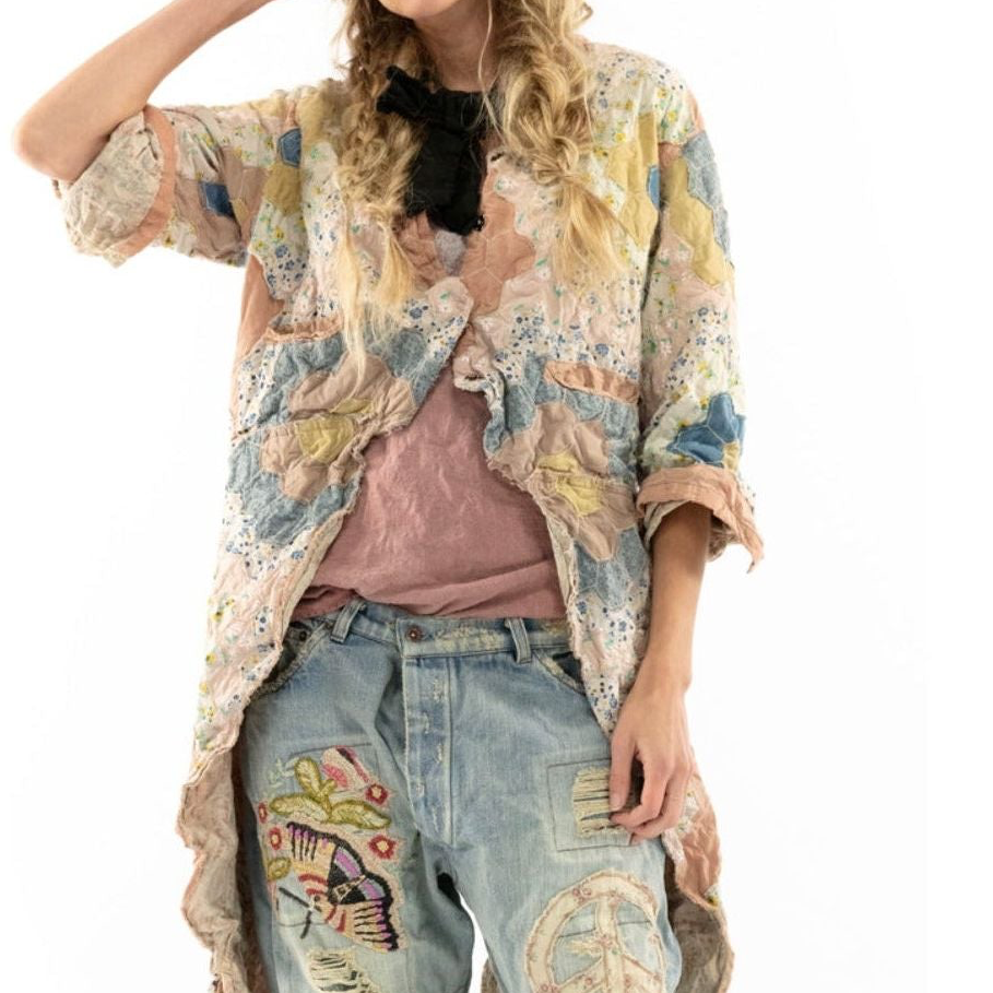 European Cotton Quiltwork & Patchwork Mixed Button Closure down Front (wrap effect in photos achieved by pinning) Hand-Fading, Distressing,...