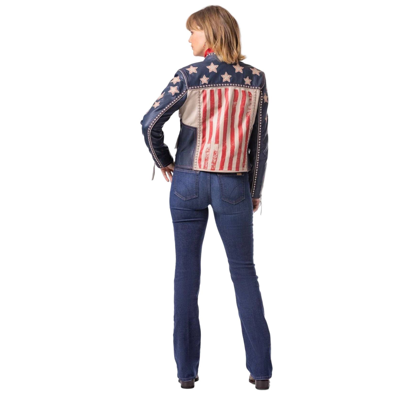 Double D Ranch Hayden’s Jacket, made from 100% cowhide leather with studding, conchos, printing, lacing, stitching and fringe. Features: Material: Leather...